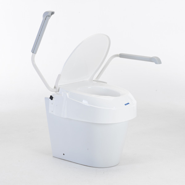 Die beliebte Toilettensitzerhöhung AT-900: Die Sitzerhöhung für die Toilette ist mit der Schnellverschraubung in Sekunden festgedreht. Die Sitzhöhe bzw Erhöhung (ab Toilettenbecken)) ist wahlweise einstellbar von 6 cm, 10 cm und 15 cm. Die Sitzerhöhung besitzt hochklappbare, ergonomische Armlehnen für zusätzlichen Halt beim Hinsetzen und Aufstehen. Bei Bedarf kann auch nur eine einzelne Armlehne montiert werden.